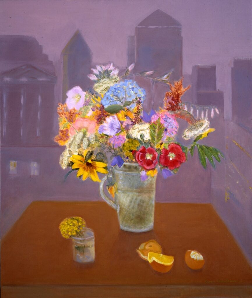 For most of her career, she “engaged but one subject: still lifes, typically of flowers arranged on windowsills with a city or country vista in the background.”5