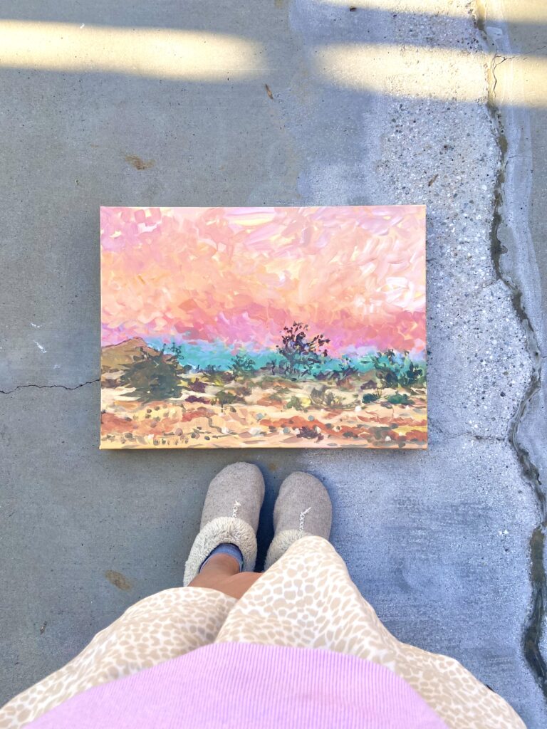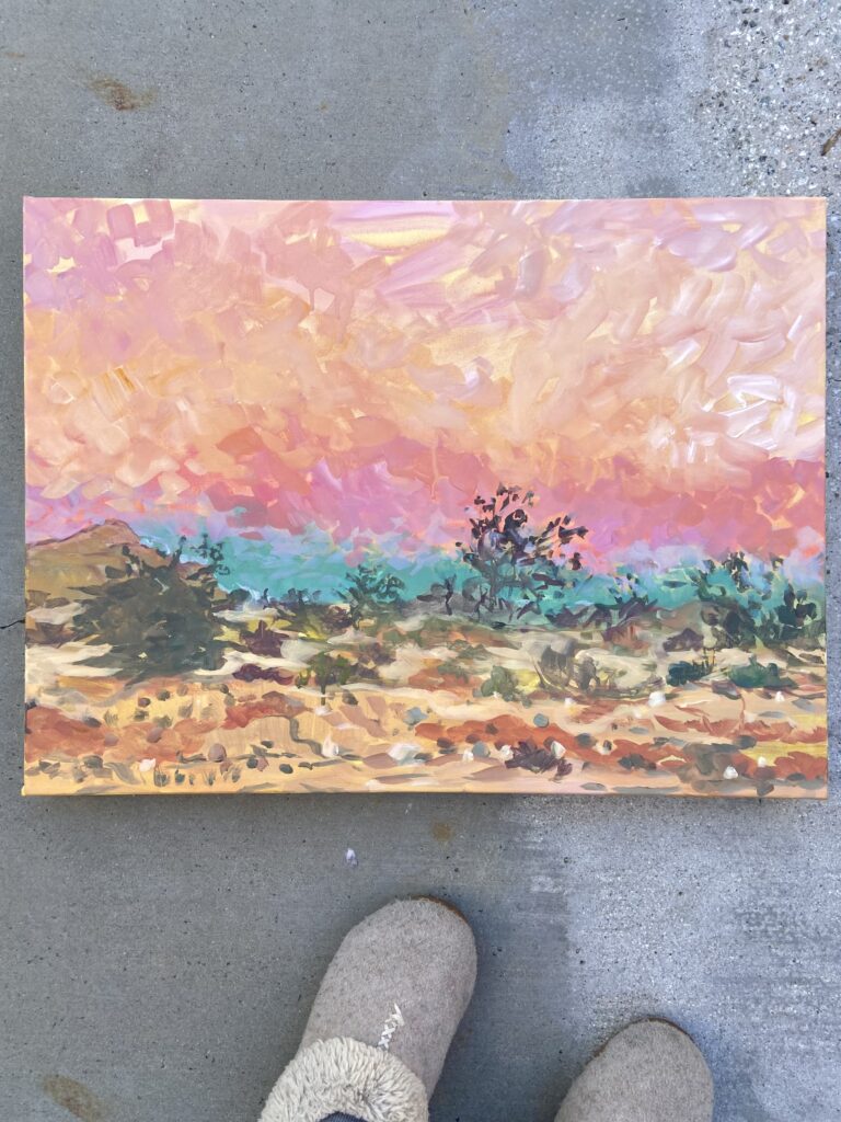 I was super inspired by the sunset colors during our dessert Thanksgiving trip this year and knew I wanted to paint them once we got home (I brought plein air painting supplies but it was so hot and so cold so fast I opted to store the memories and wait on the actual painting).